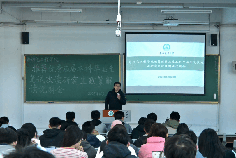 为帮助学院学生深入了解推荐免试攻读研究生政策,明晰推免资格获取路径与加分项细则,2025年10月23日,自动化工程学院于东阶一合、二合举办“推荐优秀应届本科毕业生免试攻读研究生政策解读说明会”。本次说明会由23、24级学生代表参加。