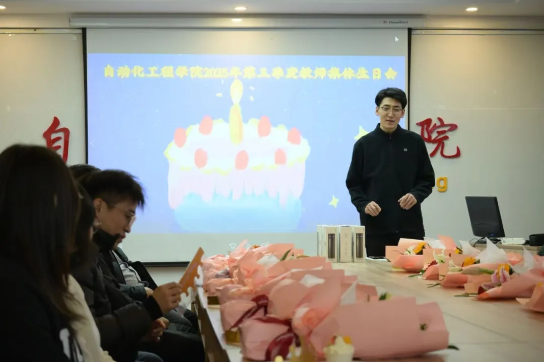 为落实学校工会工作部署,进一步强化学院教师队伍凝聚力与向心力,11月20日中午,自动化工程学院于主教430会议室举行2025年第三季度教师集体生日会。学院本季度过生日教师齐聚一堂、共庆生辰,活动由学院分工会主席谢天祥主持。