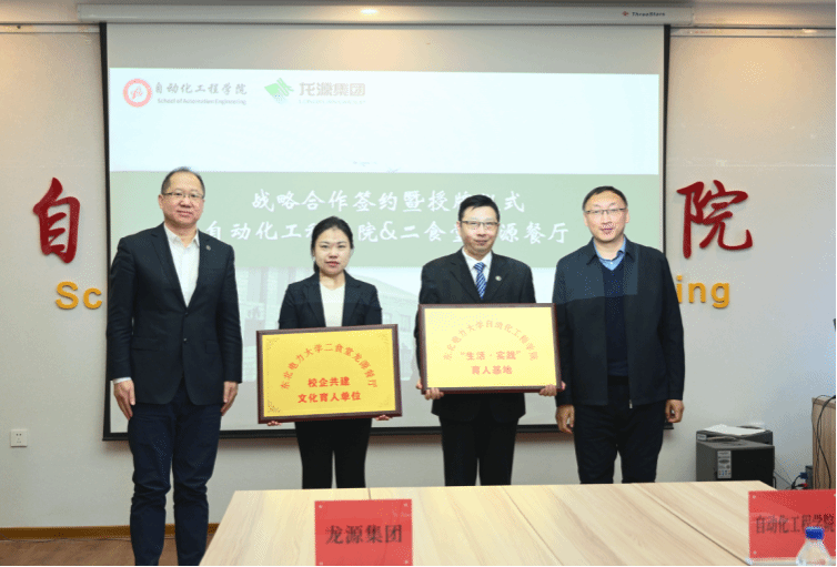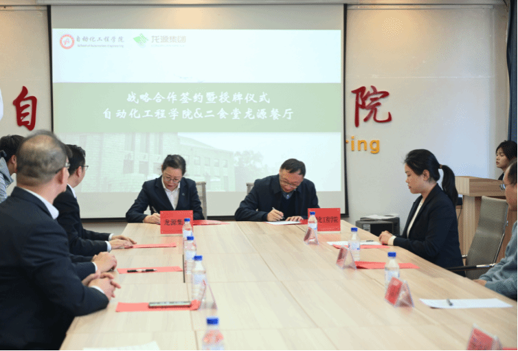 为深化产教融合,进一步拓展实践育人平台,丰富育人载体,探索校企协同育人新模式,切实提升人才培养质量,助力学生全面成长成才,自动化工程学院与东电二食堂龙源餐厅经过前期友好协商、充分沟通及精心筹备,于2025年12月5日,在主教430室举行校企共建育人合作签约暨授牌仪式。龙源集团副总裁李家勇、龙源集团吉林公司总经理张芹、龙源集团吉林公司东电项目总经理助理刘虹声、龙源集团吉林公司东电项目总经理助理沙岩、龙源集团吉林公司东电项目第二学生食堂店长王志刚、龙源集团吉林公司综合办经理施岩等龙源集团代表,自动化工程学院党委书记马崇升、校党委学生工作部副部长佟金梅、校后勤保障部副主任李燕军、学院学生工作办公室主任李丹、学院学生办公室教师代表王英乾及学生代表共同出席本次活动,见证双方合作开启新篇章。本次仪式由学院团委书记田家伊主持。