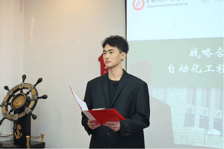 活动伊始,龙源集团副总裁李家勇与自动化工程学院党委书记马崇升先后致辞。李家勇表示,龙源集团重视与高校协同合作,此次合作既是集团拓展校企合作、履行社会责任的重要举措,也为餐厅服务优化与运营创新注入新活力,未来将依托资源优势,在生活指导、食文化传播等方面发力,助力高校落实“五育并举”育人要求,实现校企互补共赢。马崇升书记强调,学院以人才培养为核心,此次合作是深化产教融合、推进“三全育人”综合改革的关键探索,将进一步丰富育人维度、拓宽实践路径,为学生搭建全方位成长平台,希望双方稳步推进合作落地,打造校企协同育人样板,助力学生全面发展、成长成才。