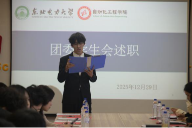 为进一步贯彻学生组织服务宗旨,强化学生代表监督作用,自动化工程学院于2025年12月29日在主教430召开2025年度学生组织主席团述职评议大会。自动化工程学院党委书记马崇升、副院长王迪、团委书记田家伊老师、各年级辅导员及学院学生代表出席会议。