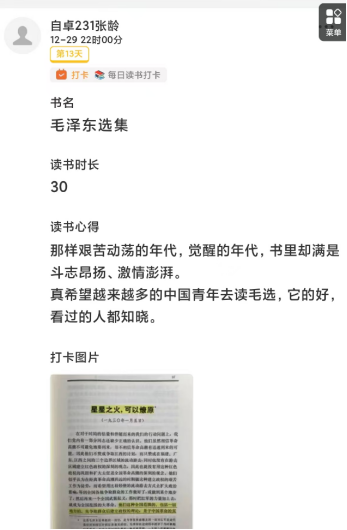 400余名学子加入红色读书打卡圈子,坚持每日研读红色经典、分享感悟心得。同学们在交流中碰撞思想、相互启发,让尘封的历史故事焕发现代意义,让坚定的理想信念扎根心底,以书香筑牢信仰之基。