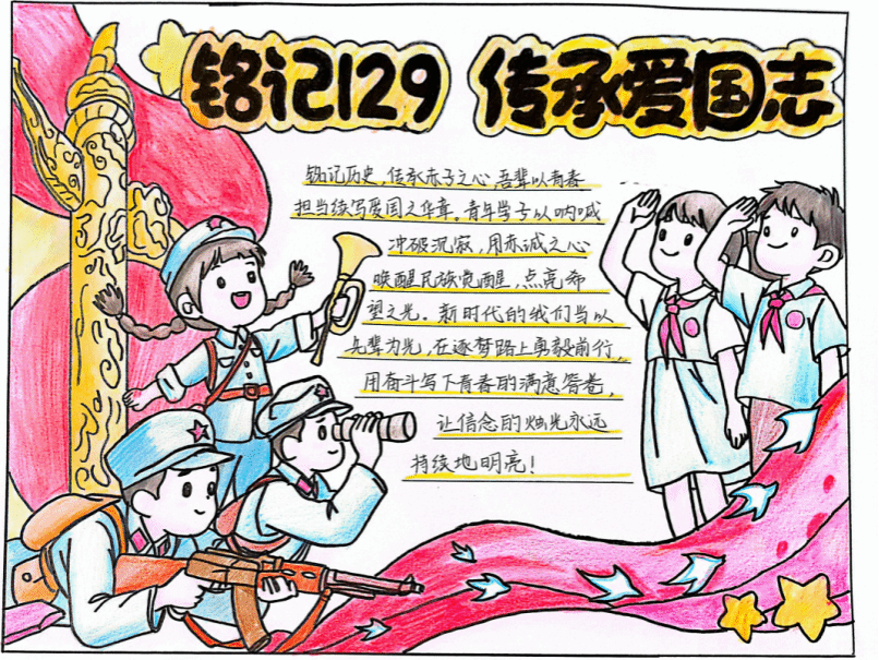 200余名同学以手抄报、绘画等多样艺术形式为载体,将红色记忆融入创意创作,在艺术表达中致敬先辈、礼赞祖国,让红色精神在创意中焕发鲜活生命力。