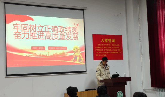 随后,支部学生代表依次分享政绩观学习心得。学生第二党支部党员代表解洪坤以 “牢固树立正确政绩观 奋力推进高质量发展” 为主题,号召党员同志在学习和工作中求真务实、真抓实干。张龄以 “正确政绩观的内涵与时代意义” 为主题,系统讲解了正确政绩观的核心要义,强调要将为民造福作为最大政绩,在实践中践行以人民为中心的发展思想。