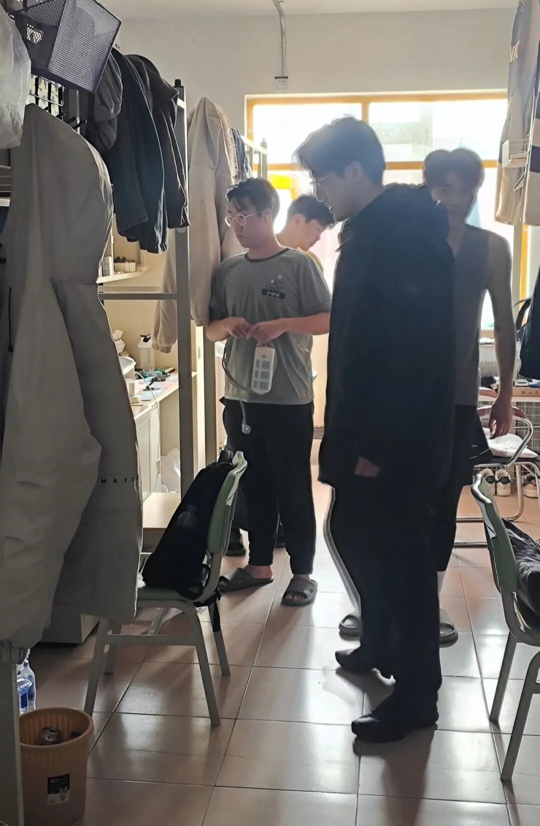 在学生寝室检查环节,检查组深入学生宿舍开展实地检查。老师们仔细查看寝室环境卫生、内务整理情况、电源线路及插排使用规范,重点排查违规使用大功率电器、人离未断电等安全隐患,对现场发现的问题及时提醒并督促整改,全力守护学生住宿安全与生活秩序。